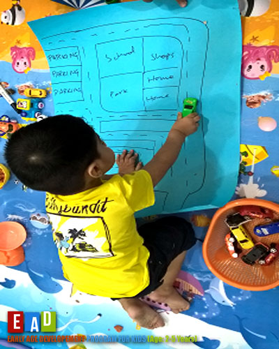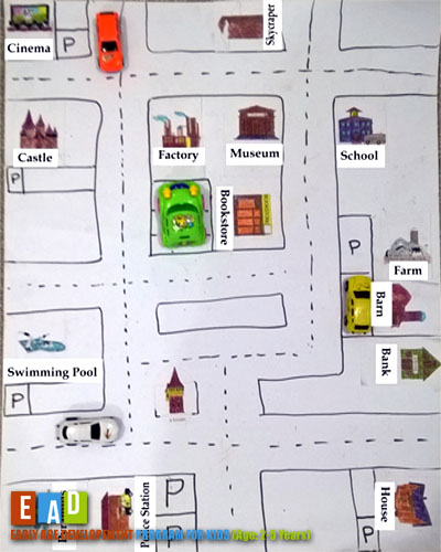 Step 3: Ask your child to drive his/her car on road map. Give instructions to go to school and park his/her car in the parking lot and so on...